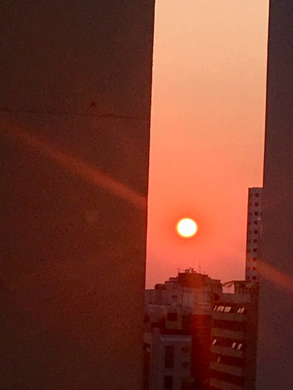 Hoje, às 6h da manhã, eu bati uma foto da minha janela, de um sol vermelho, lindo, pensei, querido diário, essa beleza mata.