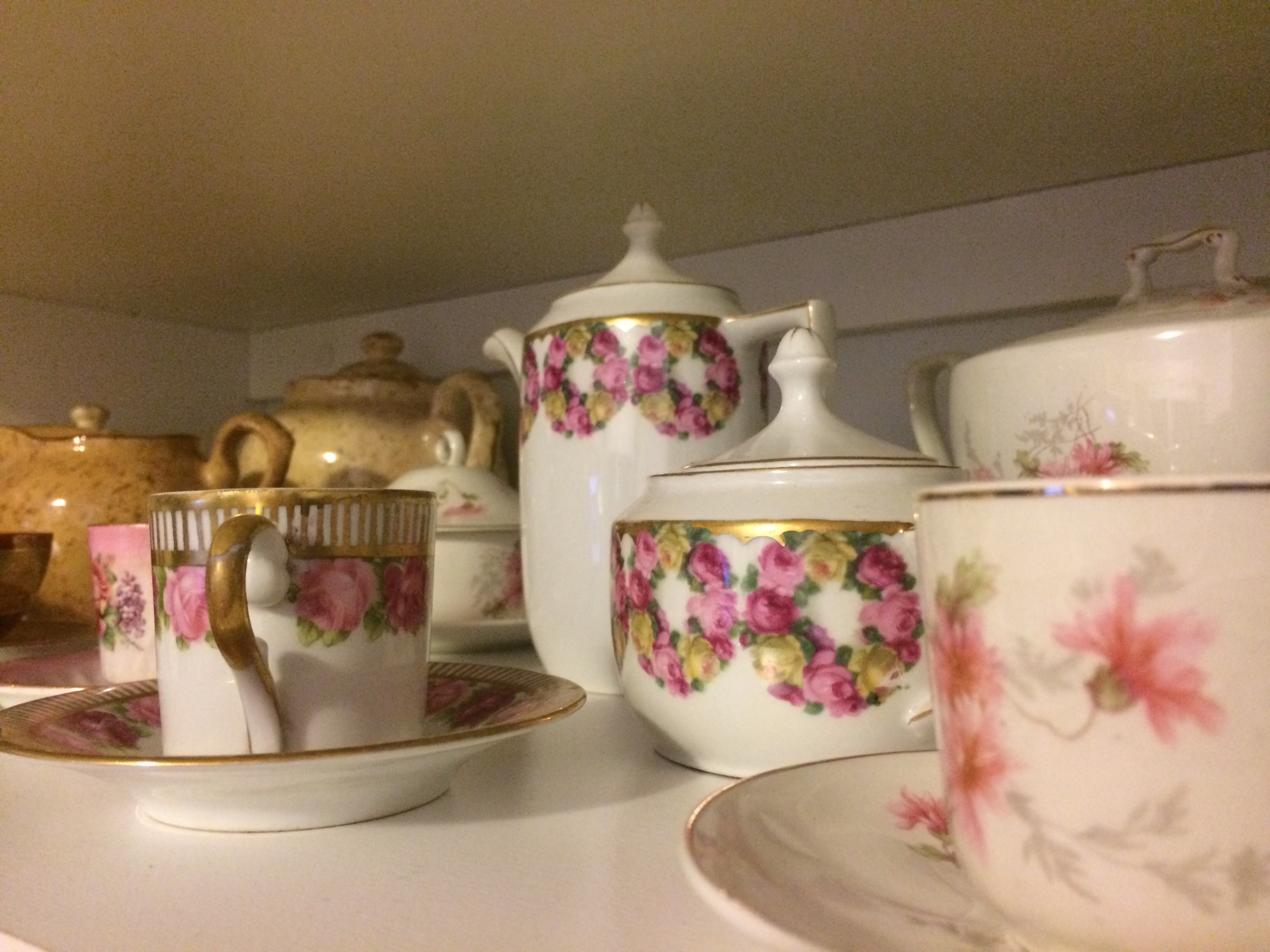 Casa de alemã, é assim que uma amiga, dona de antiquário, fala da minha. Isso porque amo porcelana, como não tenho espaço, coleciono xícaras de cafezinho, lindas. Todas elas porcelana antiga, cheias de histórias, que desconheço.