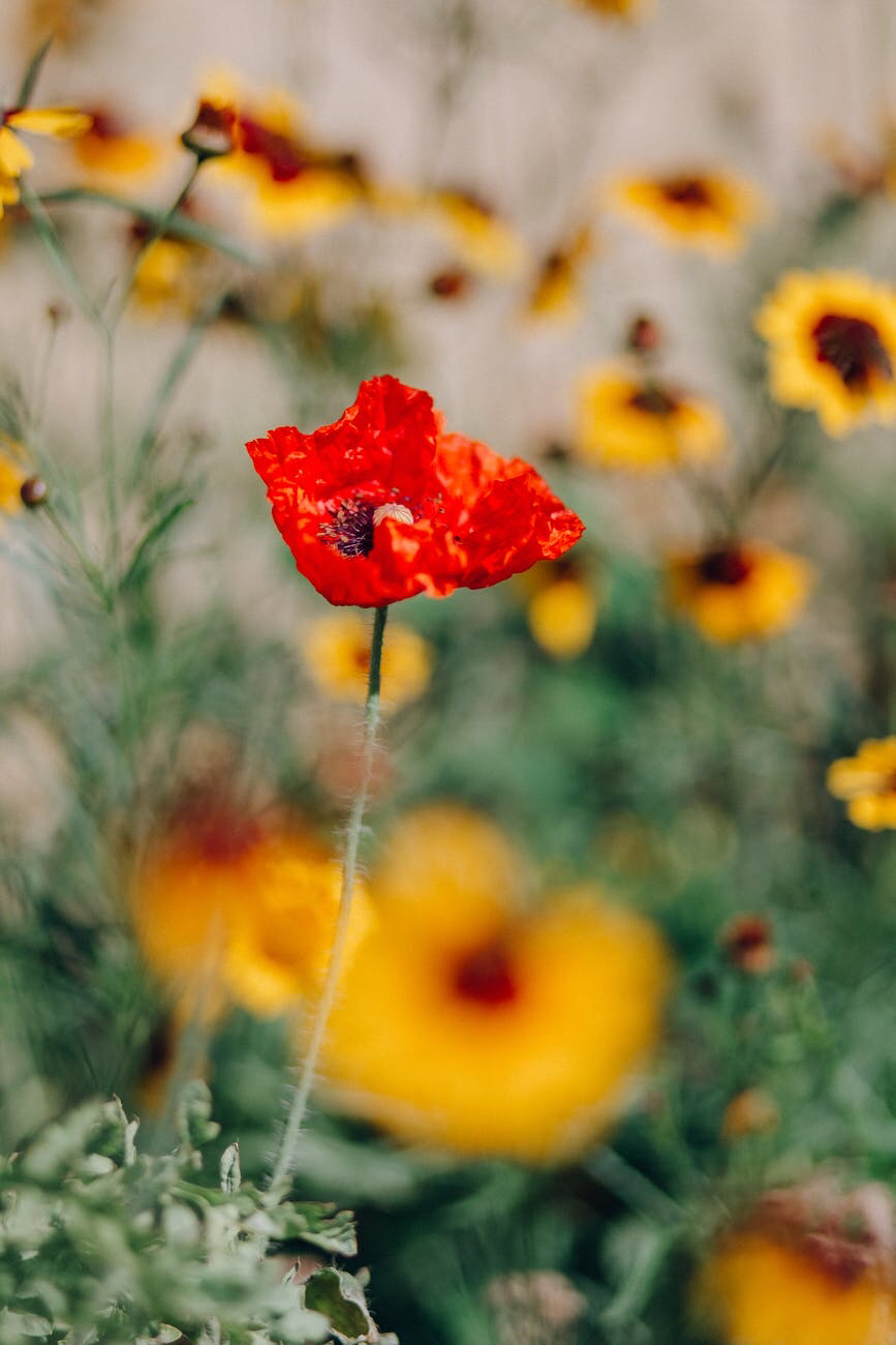 O jardim tinha flores de diferentes cores e aromas, na frente, bem no centro, as amarelas fortes, quase um laranja, cabos bem fininhos e altos que desafiavam a gravidade, depois as papoulas vermelhas, de pétalas tão finas e sedosas, me lembravam asas de borboletas.